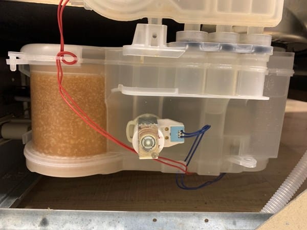 Pues bien, he desmontado lo que he podido, he vaciado el depósito de la sal (lleva años sin consumir ninguna y pensé si se pudiera “apelmazar” y bloquear algún paso...), he montado de nuevo y seguía dando un fallo similar (se paraba como antes pero esta vez pitaba y se encendía también el botón de START/STOP).