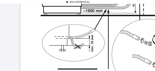 – El tubo de desagüe debe estar instalado correctamente (en el caso de aparatos empotrados a cierta altura, es necesario dejar 200-400 mm, como mínimo desde el borde inferior del lavavajillas).