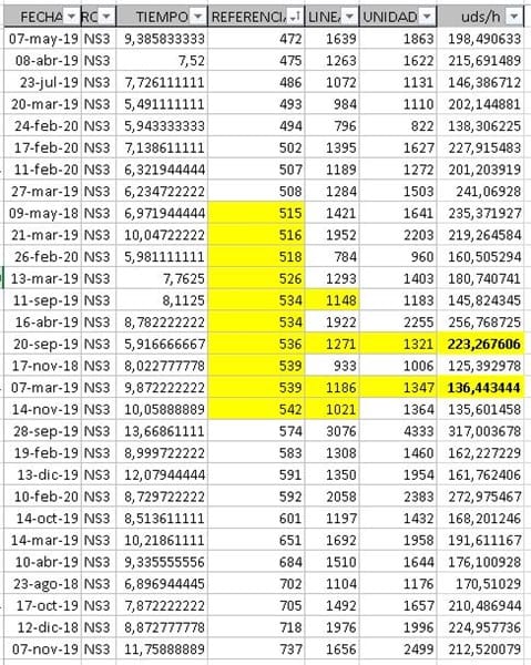 Una vez seleccionados cuales son en el histórico, los valores que más se acercan, obtengo el valor promedio de unidades por hora y con ese valor y las unidades de la tabla calculo el tiempo de ejecución que no debe ser superior a 24h.