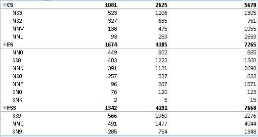 Cada una de las líneas NS3, NS2, NNV, etc... tiene asociado tres cifras, que son referencias, lineas y unidades.