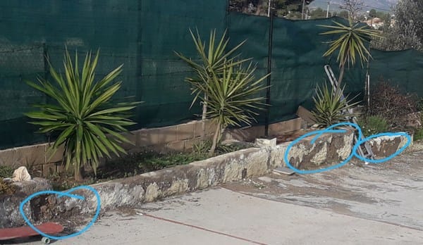 Hola a todos. Tengo esas jardineras a medio caer. Por la humedad se están destrozando, además de estar mal hechas porque son de tierra, piedras y no tienen ninguna barrera antihumedad. Quiero repararlas pero no sé cómo hacer para que no vuelvan a romperse. Poner cemento directamente creo que no pegaría y la humedad las volvería a desprender. No quiero tirar los muros y hacerlas de nuevo. Mi idea, inventada, es la siguiente: poner plásticos sobre los muros, luego un mallazo con una separación aprox de 1 cm con el muro y doblados por arriba para que se sujeten a la parte superior del muro. Luego echarles cemento hasta cubrir el mallazo y alisarlo.