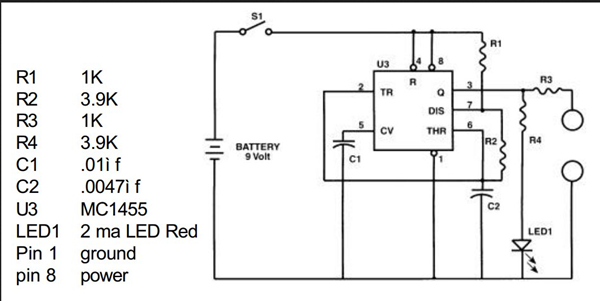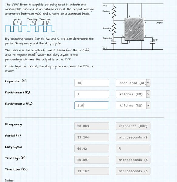 Estoy montando un circuito con el 555 estable. Que es el que muestro en la foto, que en principio es muy sencillo. El cual tiene que tener una frecuen