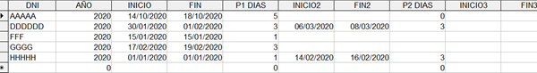 Tengo una tabla que registra los permisos que solicita cada trabajador: la fecha y los dias