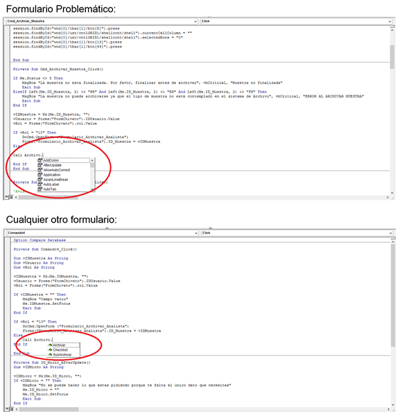 Si la escribo igualmente (Call Archivo. Archivar(vIDMuestra, vUsuario)) me da el error de compilación: "No se encontró el método o el dato miembro".