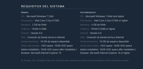 Estoy jugando con los requisitos que están a la izquierda