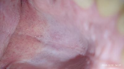 Tengo un granito en el paladar en la zona media-derecha, el caso es que no desaparece y lleva conmigo mas de un mes. Fui al médico hace dos semanas y me dijo que debía de ser una lesión que no me preocupara pero el caso es que no desaparece, a veces parece que se hace mas pequeño pero luego vuelve a aparecer (es como medio grano de arroz) igual y estoy algo intranquilo. ¿Alguien podría decirme que puede ser y como debo de actuar?. Os adjunto algunas fotos. Y Gracias de antemano.