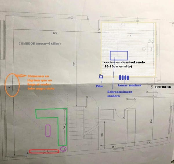 Tema distribución: no tenemos claro si poner el salón al lado de la escalera y el comedor enfrene o al contrario.