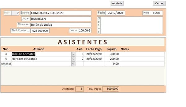 El problema viene cuando intento, a través de un botón, que solo me imprima el evento que tengo en pantalla, y los eventistas, que asisten a ese evento.