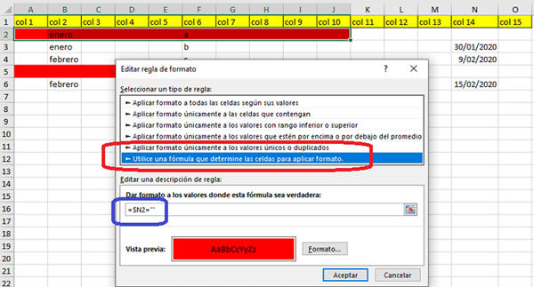 Formato condicional para celdas vacias Excel