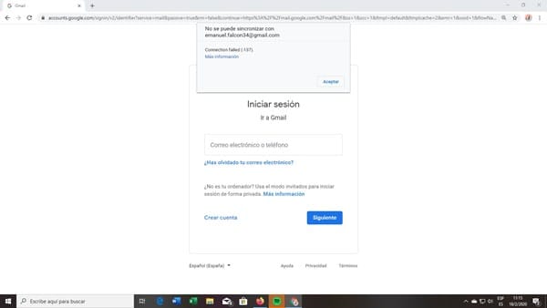 No puedo acceder a Gmail desde Google Chrome, reiteradas ya intente ingresar desde el navegador pero el problema persiste, en Mozilla no hay ningún problema