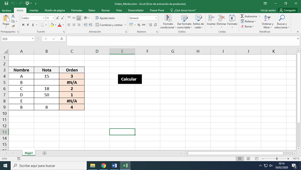 Hasta alli me funciona todo correcto al momento de presionar el boton calcular, ahora lo que deseo es que le he agregado el una condición Si, para que me evalué si la celda esta vacía no me arroje error #N/A,