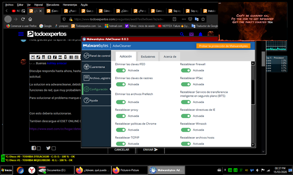 Si me podrían ayudar por favor con este problemita. Descargue un programa y desactive mis antivirus y ahora me salen anuncios y no dejan de salir. He revisado mi pc, le he borrado y desinstalado programas que no recuerdo haber descargado, también he usado programas como Malware, el que tiene el icono azul y superantispyware, me detectaron archivos, los elimine. Pero sigue... La unica diferencia es que ya no aparece tan seguido. Ya no tengo idea de que hacer.