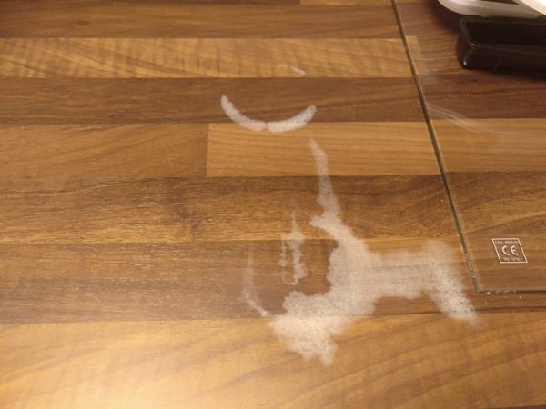 Resulta que estuve usando un líquido desatasca cañerías y puse el bote sobre la encimera. Y se quedó con la marca del culo del bote, me dispuse a limpiarlo y no sabía que hacía reacción con el agua, con lo que me cargué el barniz y ahora se ha quedado la superficie con una marca blanca horrorosa. Se nota que es el barniz, porque cuando le echas agua encima, no se nota hasta que seca del todo y se vuelve blanco de todo.