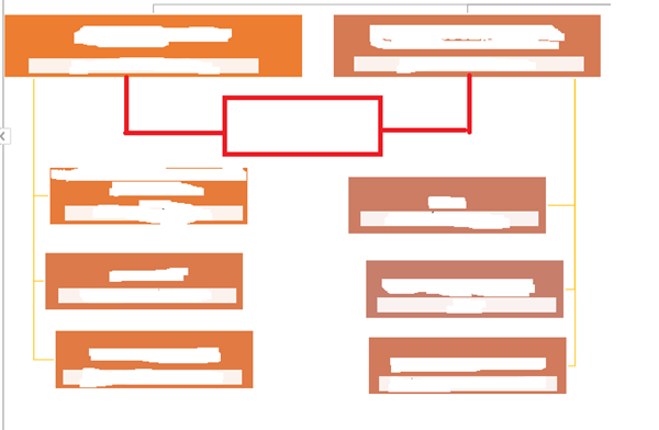 Quería crear en Power Point 365 un organigrama, pero tengo que crear un departamento que depende de 2 departamentos por encima, exactamente lo que quiero es lo que adjunto en la imagen( el cuadrado en rojo y sus conexiones) pero no lo he logrado conectar en Power Point.