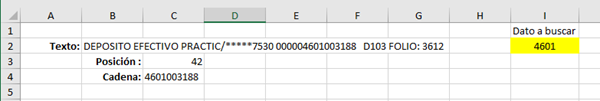 A partir de ahí requiero que si la cadena de texto contiene el numero 4601, el resultado de la fórmula necesito que sea 4601003188. El contenido de la celda puede variar, es decir no siempre es el mismo largo y el numero buscado varia de posición en la celda.