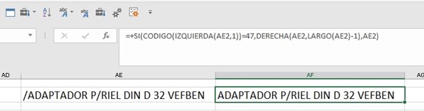 Eliminar un caracter sólo si se encuentra primero en la celda, en este caso tengo que eliminar la barra /.