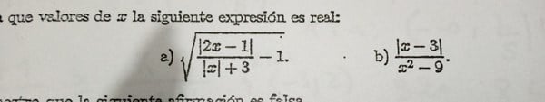 Como puedo hallar los valores para los que x es real, ¿si en el primer ejercicio es una raiz con un valor absoluto?.