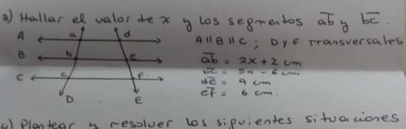 Teorema de thales hallar el valor de x y los segmentos ab y bc