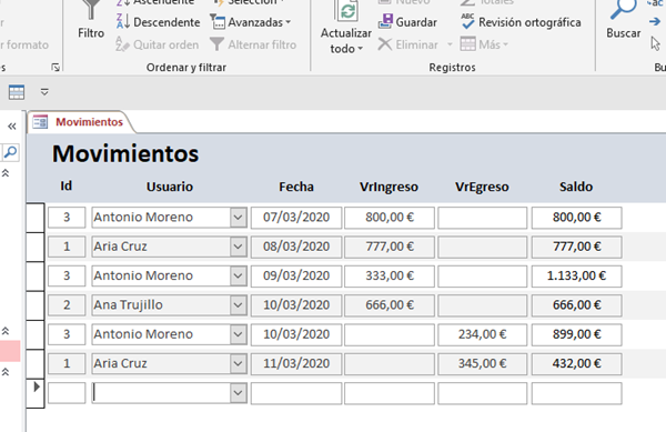 Id Nombre Fecha VrIngreso VrEgreso Saldo
