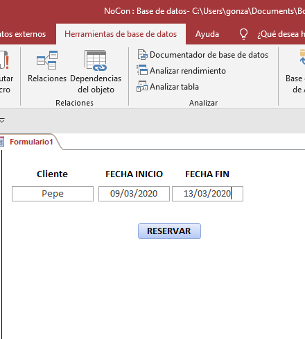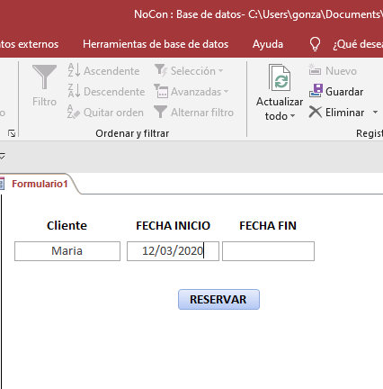 Supongamos que tengo una tabla Reservas con los mismos campos que ves en el formulario