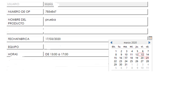 - Usuario: María este campo no es modificable, lo trae directo una vez se identifica en la base.