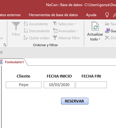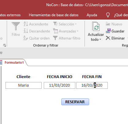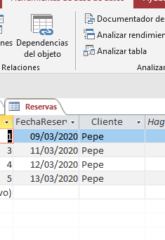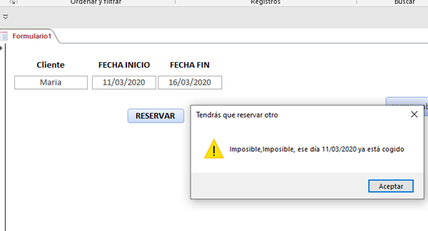 Y cuando aceptas, el cursor se vuelve al control Fechareserva para que la cambies.