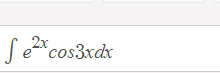 $$\begin{align}&Sabemos\ que\\&\int uv'=uv - \int u'v\\&Sea\\&u=e^{2x} \to u'=2e^{2x}\\&v'=\cos(3x) \to v=\frac{sen(3x)}3\\&\int e^{2x} \cos(3x) dx=e^{2x} \frac{sen(3x)}3 - \int 2e^{2x} \frac{sen(3x)}3=e^{2x} \frac{sen(3x)}3 - \frac{2}3 \int e^{2x} sen(3x)=\\&\text{Volvemos a hacer partes...}\\&u=e^{2x} \to u'=2e^{2x}\\&v'=sen(3x) \to v=-\frac{\cos(3x)}3\\&e^{2x} \frac{sen(3x)}3 - \frac{2}3 \int e^{2x} = e^{2x} \frac{sen(3x)}3 - \frac{2}3 \bigg(e^{2x} (-\frac{\cos(3x)}3) - \int e^{2x}(-\frac{\cos(3x)}3) \bigg) = (reacomodo)\\&\frac{1}{3} e^{2x} sen(3x) + \frac{2}9 e^{2x} \cos(3x) - \frac{2}{9} \int e^{2x}\cos(3x)\\&\text{Pero no olvidemos de donde partimos...juntando el inicio, con esto último, tenemos...}\\&\int e^{2x}\cos(3x) = \frac{1}{3} e^{2x} sen(3x) + \frac{2}9 e^{2x} \cos(3x) - \frac{2}{9} \int e^{2x}\cos(3x)\\&Agrupando\\&\int e^{2x}\cos(3x) + \frac{2}{9} \int e^{2x}\cos(3x)= \frac{1}{3} e^{2x} sen(3x) + \frac{2}9 e^{2x} \cos(3x)\\&\frac{11}{9} \int e^{2x}\cos(3x)= \frac{1}{3} e^{2x} sen(3x) + \frac{2}9 e^{2x} \cos(3x)\\&\int e^{2x}\cos(3x)= \frac{9}{11} \bigg( \frac{1}{3} e^{2x} sen(3x) + \frac{2}9 e^{2x} \cos(3x) \bigg)\\&\int e^{2x}\cos(3x)= \frac{3}{11} e^{2x} sen(3x) + \frac{2}{11} e^{2x} \cos(3x) \end{align}$$Salu2