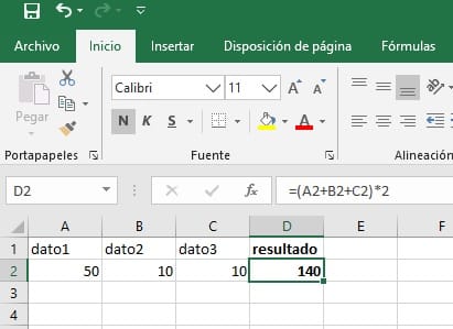 Como puedo hacer una suma de varias celdas de excel y multiplicar el resultado por una cantidad determinada?