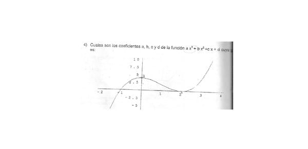 El ejercicio dice . Cuales son los coeficiente a, b, c y de de la función ax^2 +bx^2 +cx + de cuya gráfica es la siguiente.