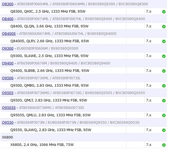 Desconozco la forma de saber si la BIOS actual es compatible o admite estos dos procesadores, pero opino que la prueba de que la BIOS por defecto (la que tiene actualmente), es compatible con un Q9550 y X6800 es que en todas las páginas de referencia, figuran como compatibles con la placa tal cual está.. es cierto que esto no significa con total seguridad que la compatibilidad quede 100% garantizada, pero bueno, la probabilidad es muy elevada, eso sí es seguro.