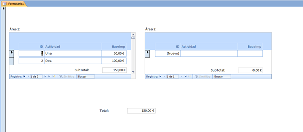 He intentado varias fórmulas en este subtotal, pero no doy con la tecla. El campo que debe sumar es [BASE IMPONIBLE].