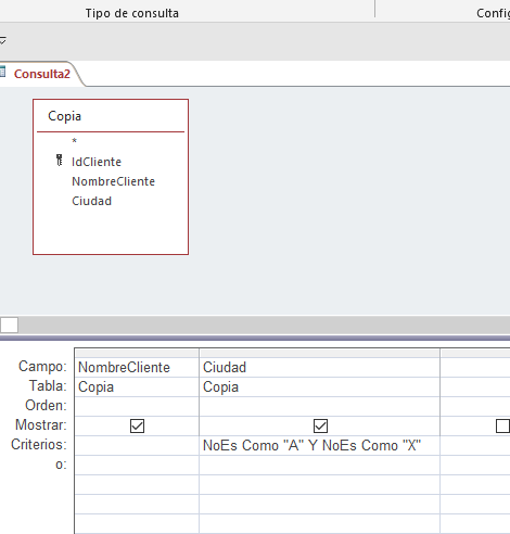 Entonces hice una consulta de actualización en donde dice Actualizar a pongo RESTO. Y en criterios pongo "not like A or X" y no me funciona, me muestra que me va a cambiar también las X. Si pongo "not like A and " tampoco lo logro.