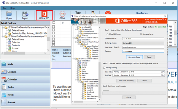 The KDETools PST to Exchange Server Migrator successfully migrates multiple PST files into Live Exchange Server. It supports various file types like MBOX, Office 365, Live Exchange server, Gmail, EML, Zimbra, EMLX, MSG, HTML, etc. For this PST to Exchange Server Migrator application, Outlook installation is not necessary. By this software, you can get full migration of the files from PST to Live Exchange Server directly.