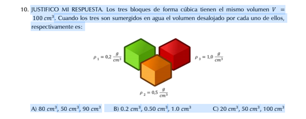 Justifico mi respuesta. Los tres bloques de forma cúbica tienen el mismo volumen V =