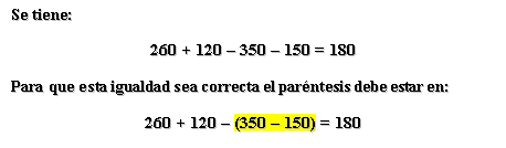 Encuentra en esta operación el lugar correspondiente del paréntesis 260+120-350-150=180