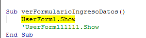 Sub verFormularioIngresoDatos() frmIngresoDatos.Show End Sub
