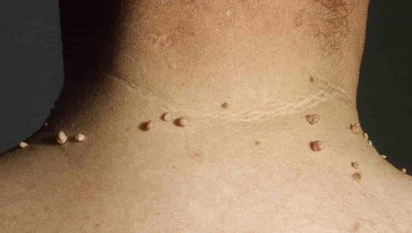 Si fuera posible -y llegara a ser necesario-, el especialista dermatólogo podría hacer una biopsia o cultivo de tejido de uno de los lunares/verrugas, tomando un trozo de tejido para analizarlo en un microscópio.. de esta forma podría saber qué posible bacteria o virus está provocando esta anomalía, o bien si tan sólo son acumulaciones de grasa. Mucho ánimo.