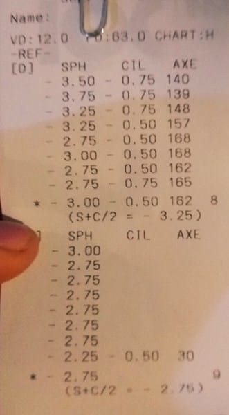 Hola! ¿Pueden interpretar mi graduación óptica? Además quería consultar a que se debe la gran difere cia entre este resultado y la graduación actual de mis gafas, que tienen sólo -0.50 en cada ojo. Hice mis gafas hace menos de un año...