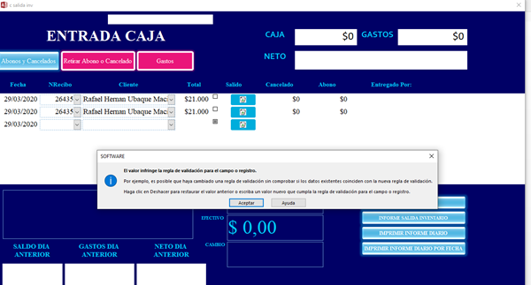 Tengo un formulario continuo que se llama salida de inventario hay selecciono las facturas que ya voy a dar de baja pero tengo un problema