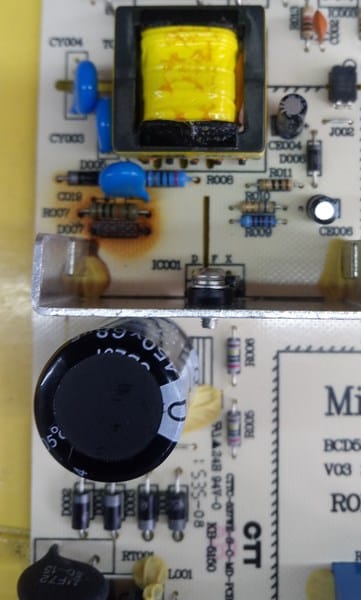 La tarjeta en cuestión tiene la referencia BCD37WE-S-C, es Midea, como dije antes, el diodo se partió a la mitad y no se ve el código, adjunto fotos de la tarjeta y de la parte dónde estaba ubicado el diodo, gracias