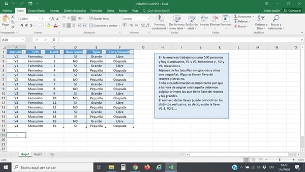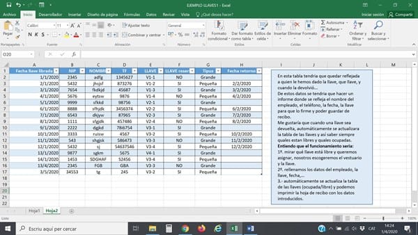 Tengo que llevar el control de las llaves de las taquillas de los empleados de la empresa y quería hacer hoja de Excel o Acces. En mi trabajo tenemos 4 vestuarios, 2 de chicas y 2 de chicos, y unas 150 taquillas en cada una. La numeración de las taquillas es V1, V2, V3 y V4 más el número de llave que puede coincidir en los diferentes vestuarios, es decir, existe el V1-1 y el V2-1. Constantemente hay un entrar y salir de trabajadores y quisiera:
