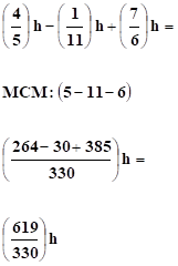 (4/5)h - (1/11)h + (7/6)h se responde en forma de fracción