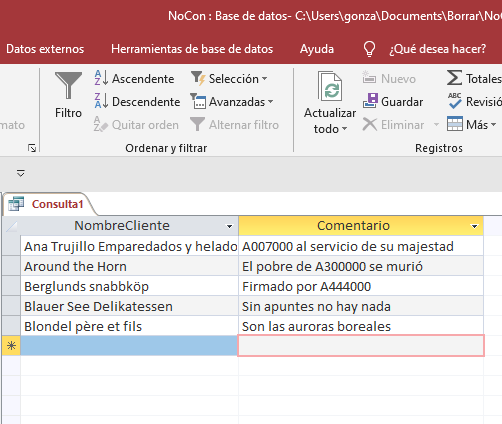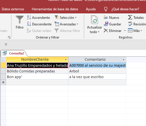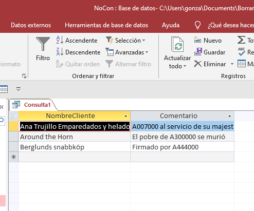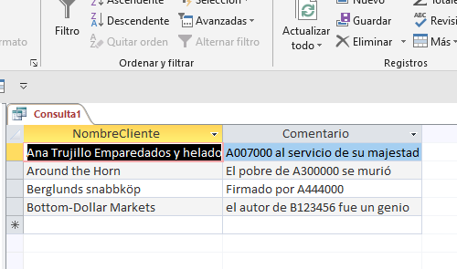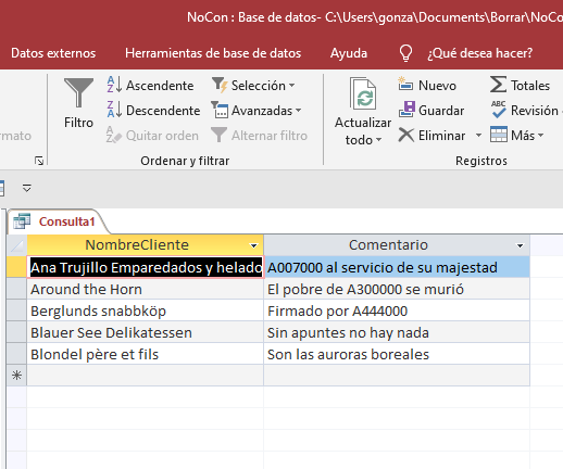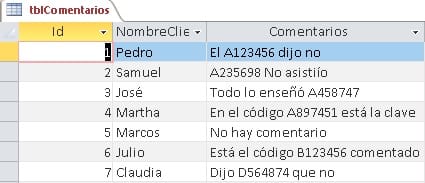 Tengo un campo llamado "Comentarios" que contiene por ejemplo la siguiente info: