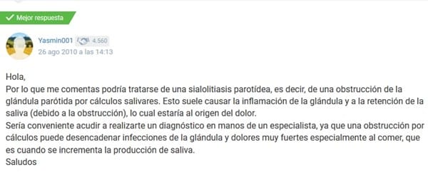 Por un golpe de suerte he visto esta respuesta de un médico onine, que propone un cuadro hasta ahora desconocido por mí; sialolitiasis parotidea,