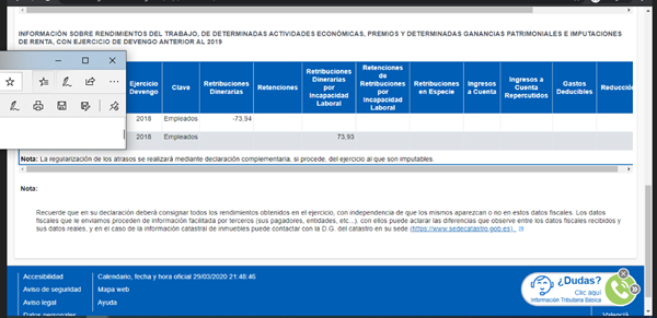 Deseo saber si, en la tramitación del borrador del IRPF 2019, debo añadir o no esta cantidad (en el apartado referente a declaración complementaria) que aparecen en mis datos fiscales (adjunto 1º) y el certificado de retenciones emitido por la empresa (adjunto 2º). Por si es de utilidad, en dic/2018 estuve tres o cuatro días de baja por contingencias comunes.