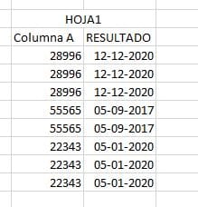 La Hoja 1 contiene los datos en la col A, la equivalencia de datos se encuentra en la Hoja 2 col C y las fechas se encuentran en la Hoja 2 col N.