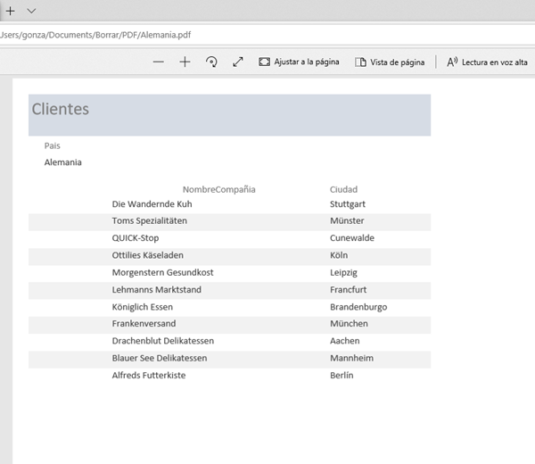 Exportar tabla de access a varios pdfs