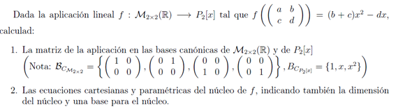 No entiendo como se pasa de M 2x2 a P2[x] he hecho ejercicios en los que se pasan de R3 a M2x2 y parecidos pero no entiendo como se pasa a P2[x] el proceso utilizado para otras aplicaciones lineales no parecen ser viables para este tipo de problemas.(A mi parecer)