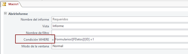 Y la segunda duda es, ¿por qué hay veces que al especificar el contenido de la condición where hay que usar el formato ="[Tabla].[Campo]..." y otras veces lo que pretendes se consigue utilizando el formato [Tabla].[Campo]..., sin poner un signo igual al principio y sin comillas?