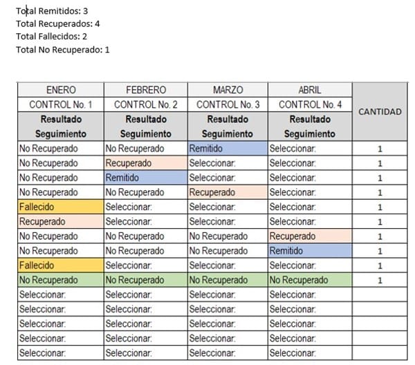 y me cuenta una sola vez cuando es. Recuperado, No Recuperado, Remitido y fallecido, pero el inconveniente lo tengo cuando una de esas columna cambia de resultado o estado. como por ejemplo: cuando esta: No recuperado y pasa a Recuperado, o cuando pasa de No Recuperado a Remitido. Realmente no se como resolverlo.